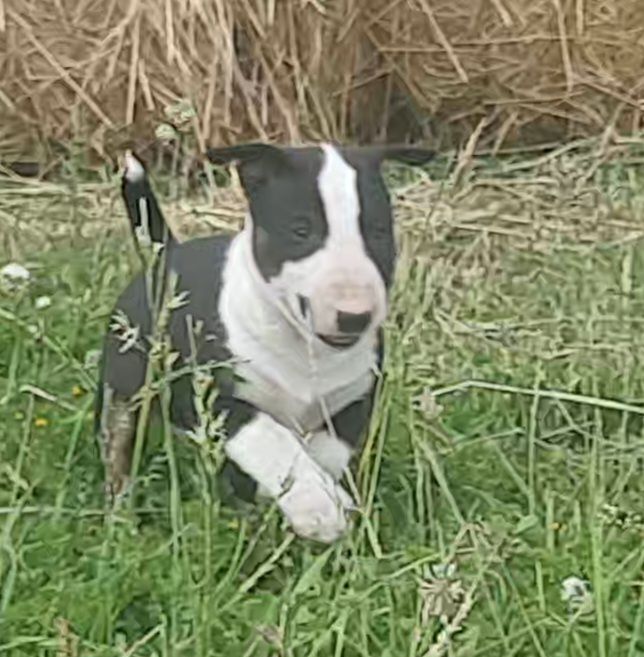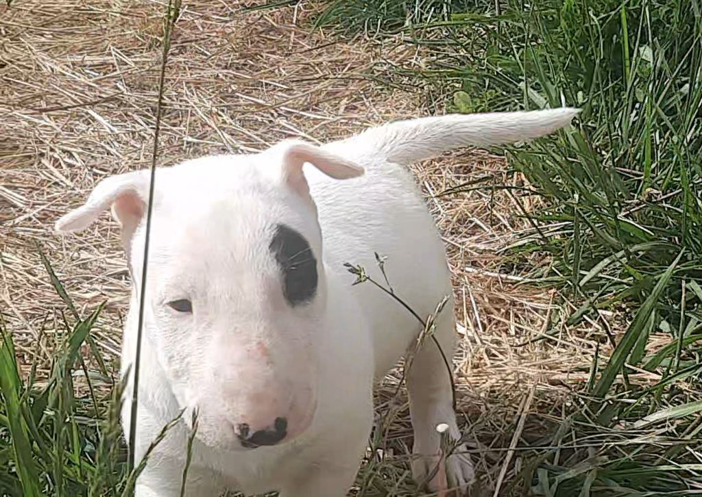 Sa tête de clown et son caractère nous ont rendus fous de lui, que certains trouvent pourtant intimidant. Mais il n'en est rien, les bulls terriers sont de formidables compagnons de famille. Les nôtres vivent avec nous au sein de la maison et de notre petit élevage de chevaux. Nous recherchons pour nos chiots des futurs propriétaires aimants et prêts à devenir raides-fous de leurs nouveaux compagnons. Mais attention, le bull terrier, c'est avant-tout un art de vivre, ce n'est pas un chien comme les autres. Il ne supportera pas le manque d'attention à son égard, et malgré tous ses efforts pour bien se comporter, vous devrez apprendre à lui pardonner ses bêtises!